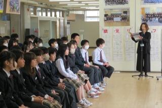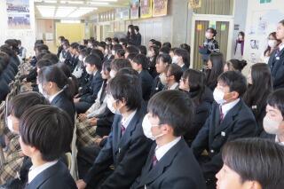 初めに校長から,被災者の声や思いを全校生徒に伝えました。