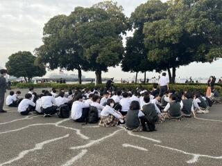 修学旅行1日目。全員集合場所にたどり着き、無事に班別研修が終了しました。