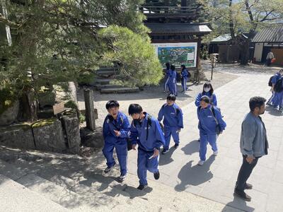 山寺に到着しました。山寺登山では、クイズラリーや俳句づくりを行います。天候もよく、五大堂からの絶景は最高だと思われます。