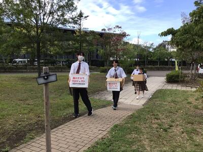 9月16日に行われる生徒会役員選挙に向けて,立候補した生徒たちが朝に選挙活動を行っています。