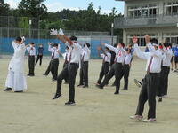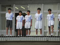 9月21日(水)に新人大会に向けた激励会を校庭で行いました。先輩たちから受け継いだユニフォームに身を包んだ選手たちが、校舎のテラスから新人大会への決意を発表しました。その後、応援委員が熱のこもったエールを送ったり、応援生徒の代表が励ましの言葉を送ったりするなど、3年生を中心に選手たちを勇気づけていました。