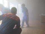 また、富谷消防署の方からお話をいただき、1年生は煙体験をおこないました。